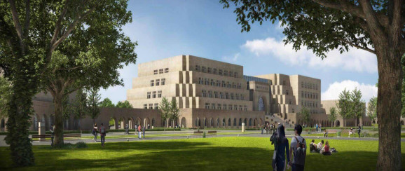 延安大學(xué)新校區(qū)圖書館為創(chuàng)魯班獎(jiǎng)項(xiàng)目,位于陜西省延安市延安新區(qū)北區(qū)楊家?guī)X組團(tuán)北片區(qū),北臨杜家溝路,東臨楊家?guī)X路。屬于延安大學(xué)新校區(qū)配套建筑基礎(chǔ)設(shè)施,建筑單體圖書館總建筑面積49883.79 m2,地下1層地上6層。