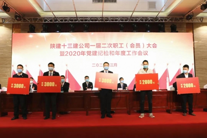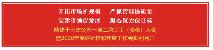 大會(huì)號(hào)召,公司全體職工要緊密團(tuán)結(jié)在以習(xí)近平同志為核心的黨中央周圍,深入貫徹公司一屆二次職工(會(huì)員)大會(huì)暨2020年黨建紀(jì)檢和年度工作會(huì)議精神,凝心聚力,務(wù)實(shí)擔(dān)當(dāng),不負(fù)韶華,篤定前行,為實(shí)現(xiàn)陜建十三建公司高質(zhì)量發(fā)展和“百億”十三建目標(biāo)不斷奮進(jìn),為陜建集團(tuán)實(shí)現(xiàn)整體上市和跨入世界500強(qiáng)再立新功。