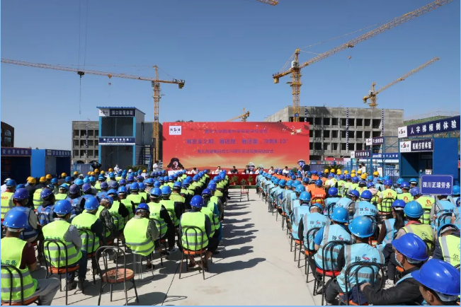 5月28日,陜建十三建公司清華大學附屬中學延安學校項目舉行“賽安全文明、賽進度、賽質(zhì)量,沖刺8.10”獻禮陜建集團成立70周年勞動競賽啟動儀式。