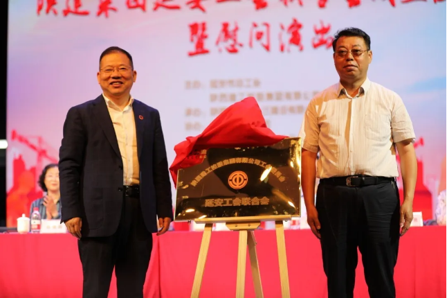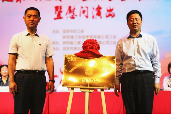 陜西省建設(shè)工會主席徐富權(quán)同志,陜建集團(tuán)黨委常委、工會主席劉小強(qiáng)同志共同為陜西建工集團(tuán)工會延安工作站揭牌。