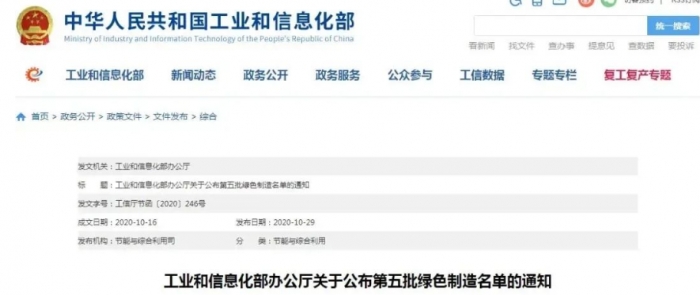 為貫徹落實《工業(yè)綠色發(fā)展規(guī)劃(2016-2020年)》和《綠色制造工程實施指南(2016-2020年)》,加快綠色制造體系建設,引領工業(yè)高質量發(fā)展,我部組織開展了第五批綠色制造名單推薦工作。經(jīng)申報單位自評價、第三方機構評價、省級工業(yè)和信息化主管部門評估確認及專家論證、公示等程序,確定了第五批綠色制造名單,現(xiàn)予以公布。其中,綠色工廠719家、綠色設計產(chǎn)品1073種、綠色工業(yè)園區(qū)53家、綠色供應鏈管理企業(yè)99家。有關事項通知如下: