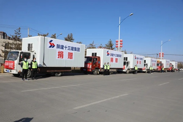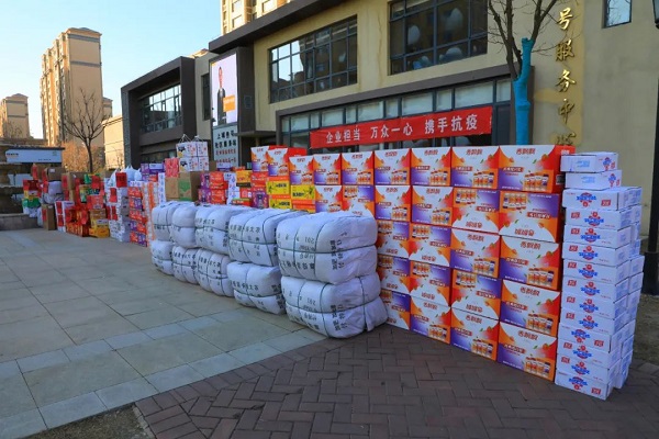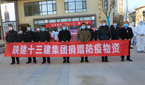 為支援一線防疫工作,陜建十三建集團(tuán)向延安新投物業(yè)服務(wù)有限公司捐贈了8000只口罩、100件軍大衣,60箱方便面、60箱火腿腸、60箱奶茶和15箱榨菜。