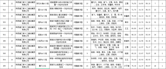近日,陜西省建筑業(yè)協(xié)會表彰了2023年度陜西省工程建設(shè)優(yōu)秀QC小組、QC小組活動先進(jìn)企業(yè)、卓越領(lǐng)導(dǎo)者、優(yōu)秀推進(jìn)者。集團(tuán)24項成果榮獲“2023年陜西省工程建設(shè)優(yōu)秀QC小組”(其中I類成果獎11項,II類成果獎12項,III類成果獎1項)