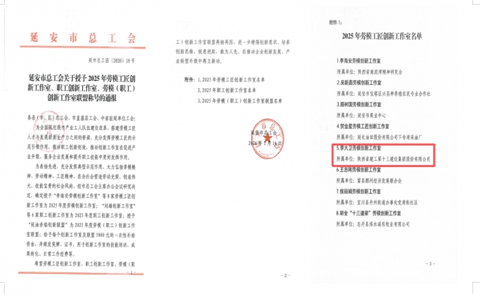 1月16日,李大衛(wèi)勞模創(chuàng)新工作室被延安市總工會授予2025年勞模工匠創(chuàng)新工作室。